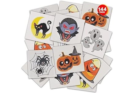 The kids might like these over candy. You can find 144-count sheets on Amazon for just under $12. Choose nontoxic temporary tattoos with assorted designs. Some stores have stick-on options, while others have the traditional ones that require water.