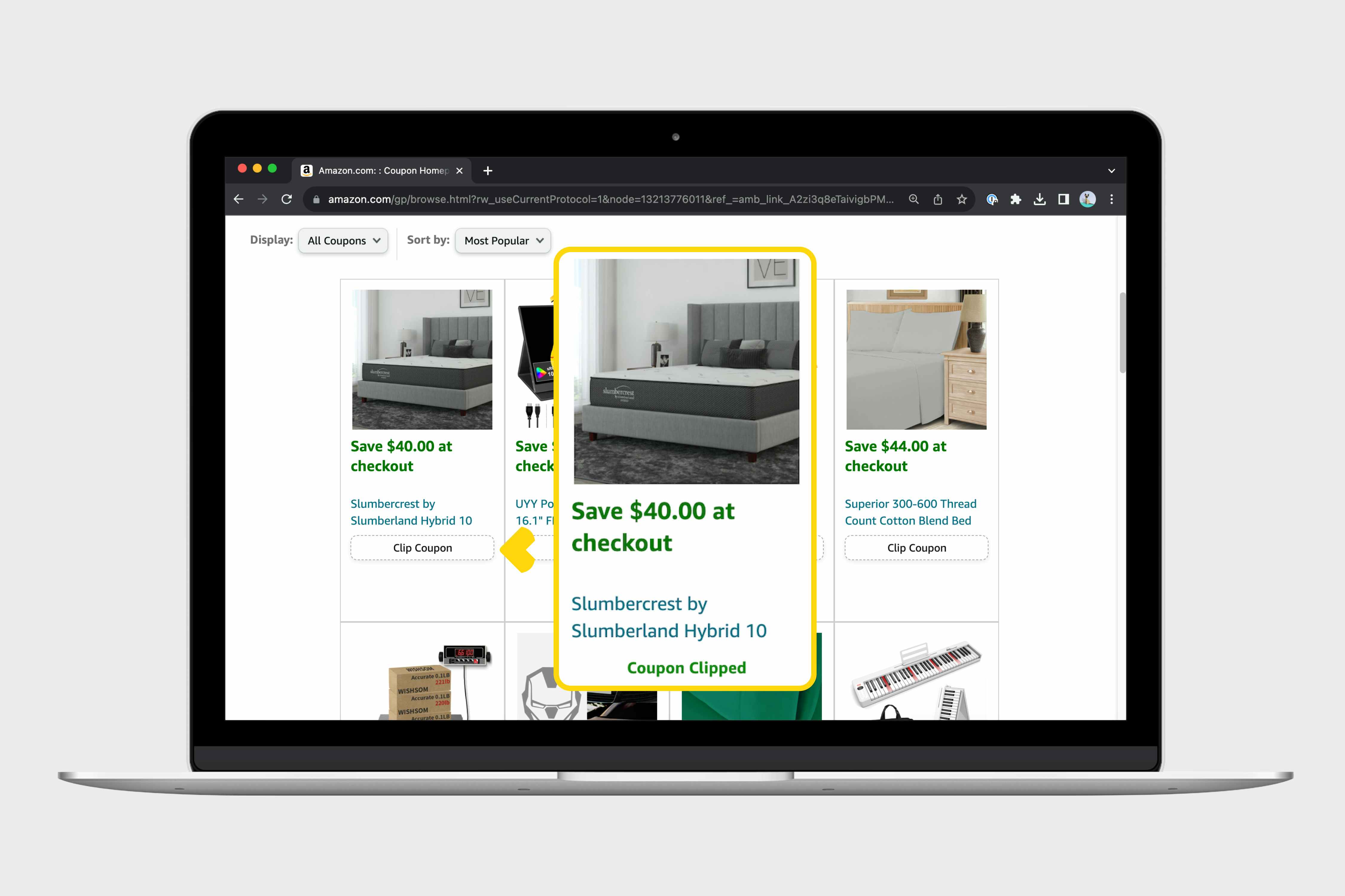 You'll see Amazon coupons on product pages as you browse. Or just go to Amazon's daily deals page to see all available coupons at once. As you browse products, look for the phrase "with coupon." Amazon's coupons are all digital, and you can "clip" them simply by checking a box. They'll get applied to your order as long as you add the item attached to the coupon to your cart. Here's exactly how Amazon coupons work.