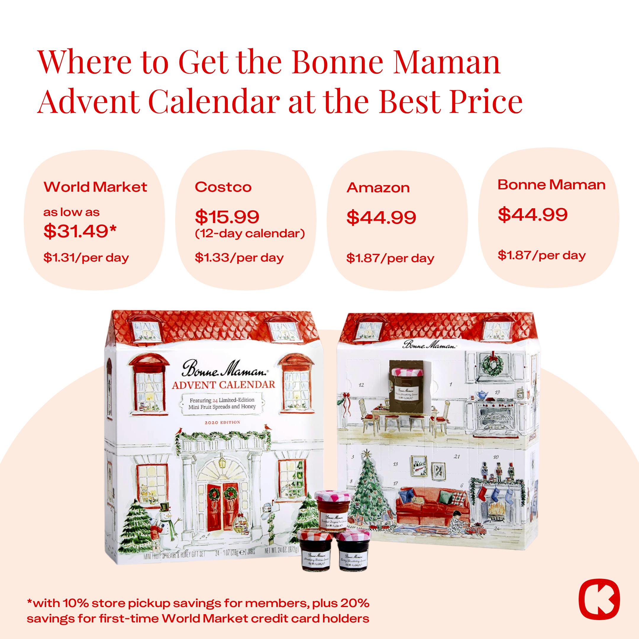 Costco has a 12-day Bonne Maman calendar for $16.