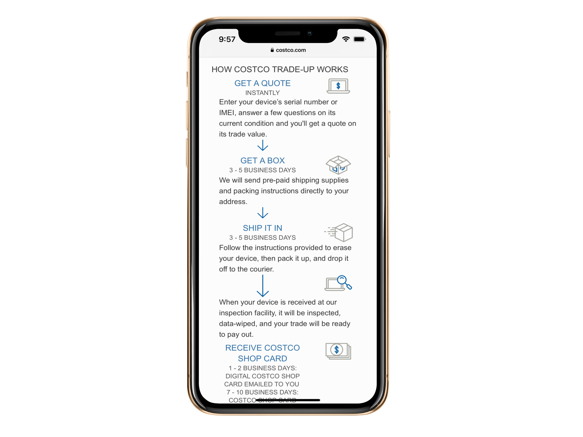 According to Phobio, the entire Costco trade-in process takes about three weeks.