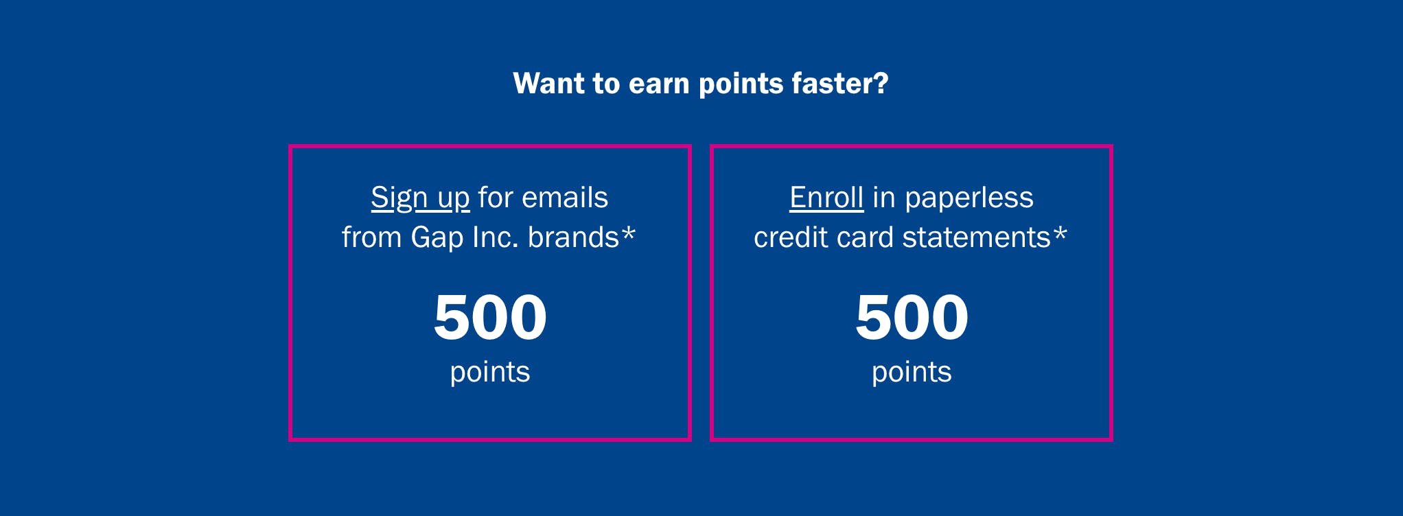 This one’s easy. I signed up to receive promo emails from Old Navy and enrolled in paperless statements for my Old Navy Visa and immediately earned 1000 points, or another $10 in rewards.
