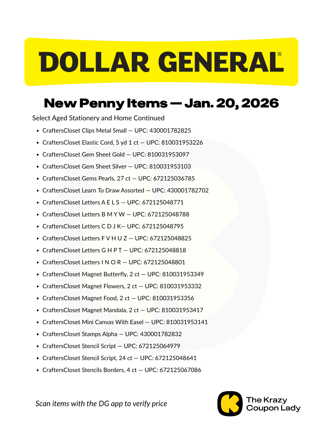 We update this post with new Dollar General Penny List items weekly. Look for the newest list each Monday afternoon.