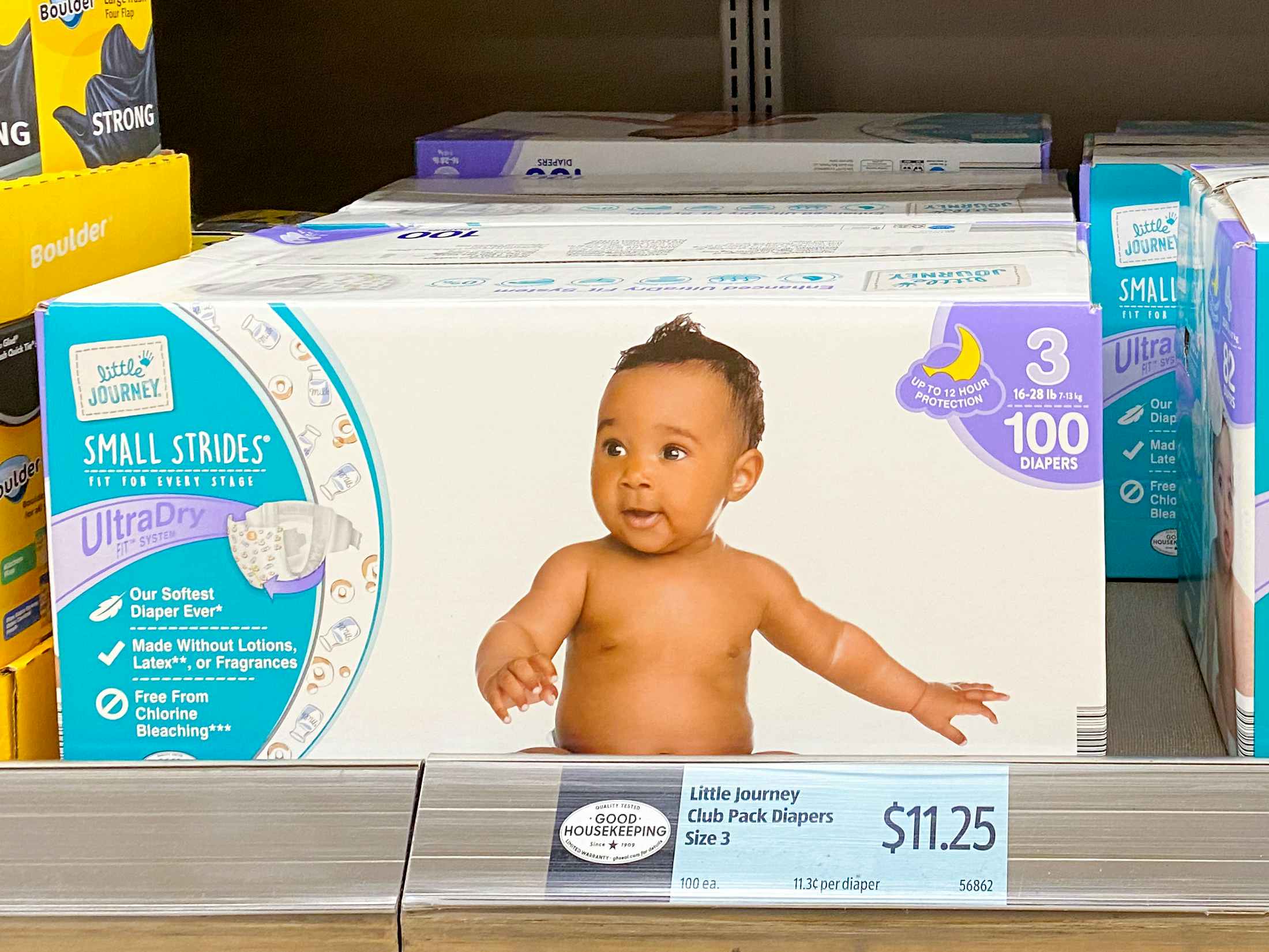 Aldi’s Little Journey diapers offer serious savings compared to name-brand options. A 100-pack of size 3 diapers costs just $13.35, making the price per diaper only $0.13. That's cheaper than many national brands, even with sales and coupons.