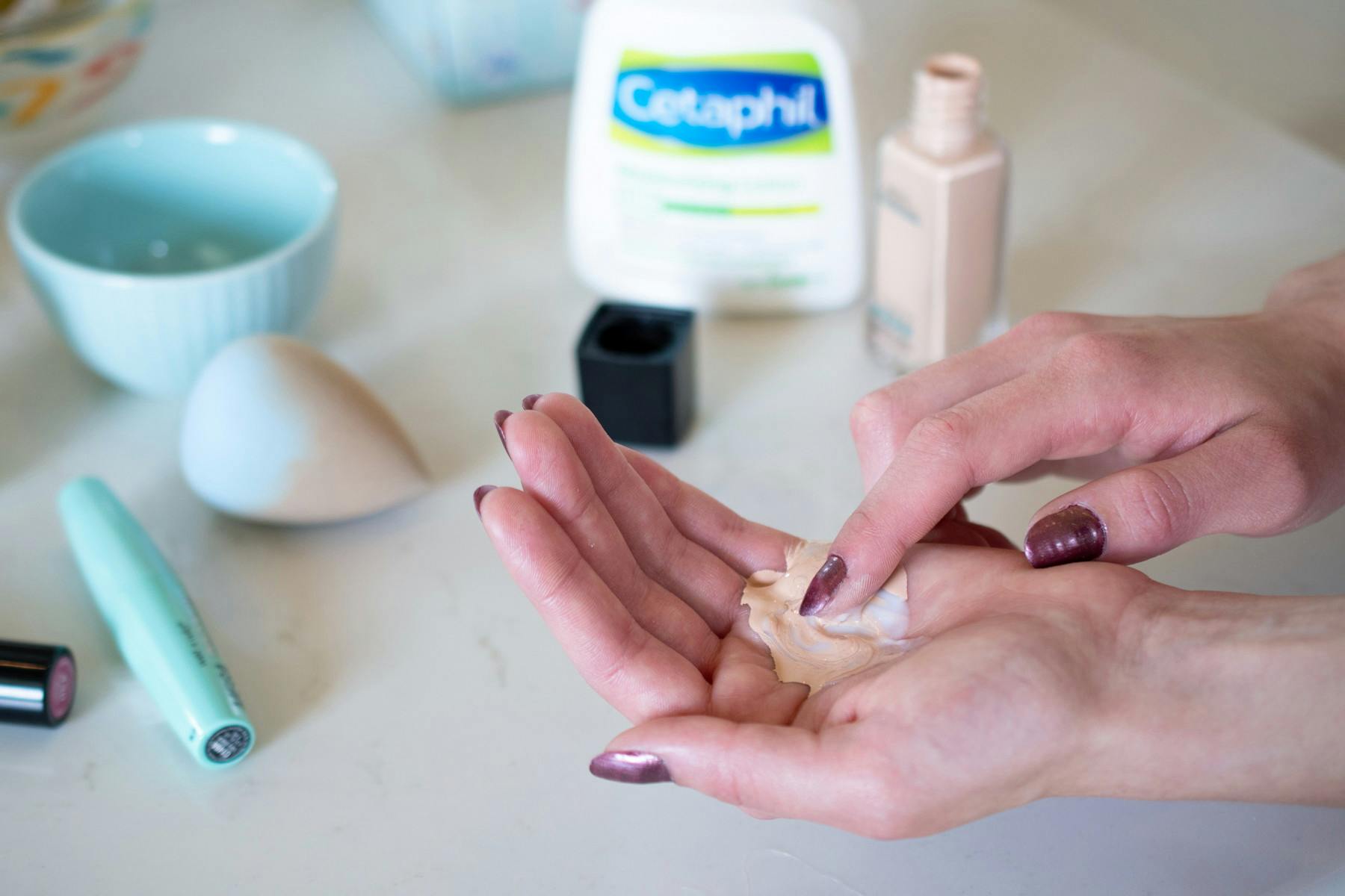 woman holding concealer up to face